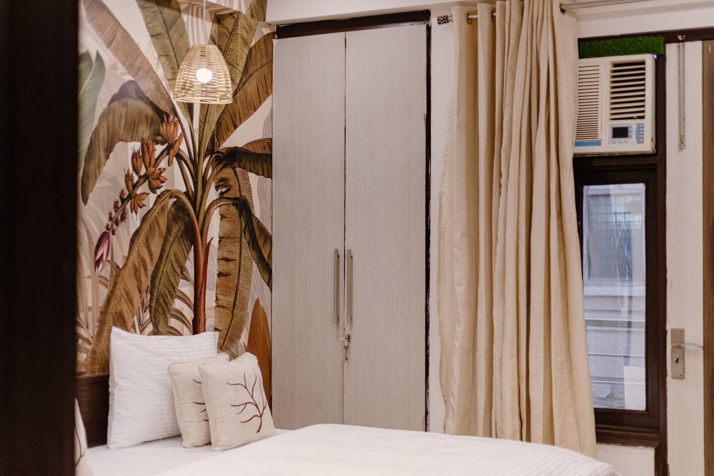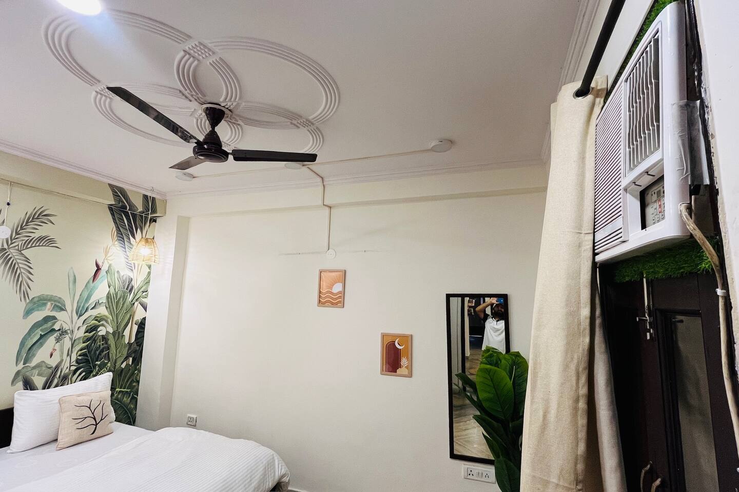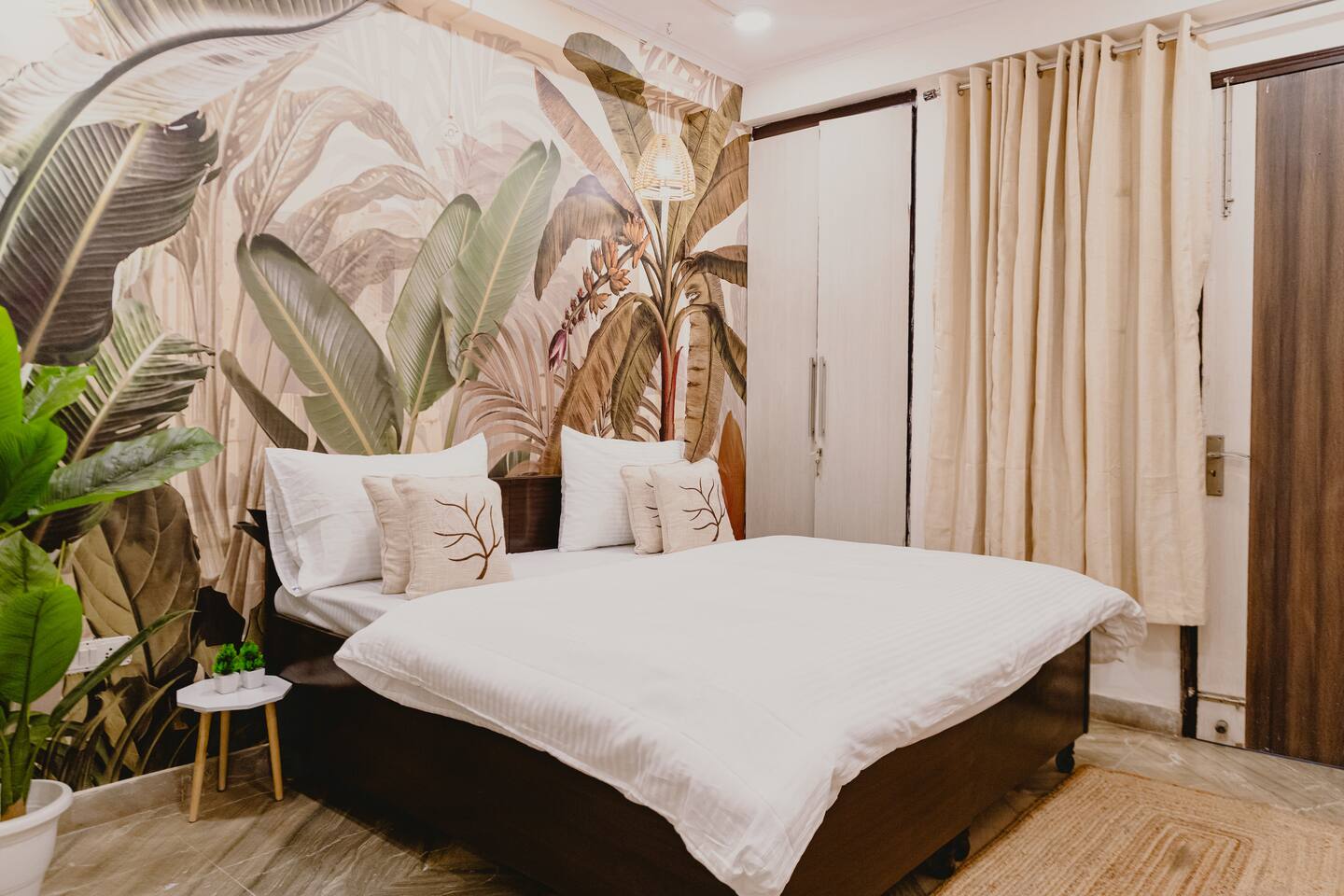 Step into a space where vibrant boho style meets the tranquility of tropical living. Our home is thoughtfully designed with modern amenities and tasteful décor that combine both style and comfort. From lush plants to colorful accents and beautiful patterns, every corner of our home invites you to relax and embrace the peaceful surroundings. Whether you're unwinding in the cozy living room, preparing a meal in the fully stocked kitchen, or retreating to one of the spacious bedrooms, our tropical boho escape offers the perfect setting for your Chattarpur stay. With an elevator to ensure easy access to all floors, comfort and convenience are always within reach. Enjoy the ideal blend of modern luxury and tropical bliss. Book your stay now and experience the charm of our Dhan Mill haven. Key Features: Only 5 minutes away from the Dhan Mill Complex, home to trendy boutiques and cafes. Spacious living room perfect for relaxation or socializing. Three chic, air-conditioned bedrooms with vibrant décor. Fully equipped kitchen ready for culinary creativity. Elevator access for easy and convenient movement. A great space for professionals seeking a productive retreat. Easy access to Delhi’s nightlife and cultural attractions. Perfect for family getaways, leisure stays, or business trips.
