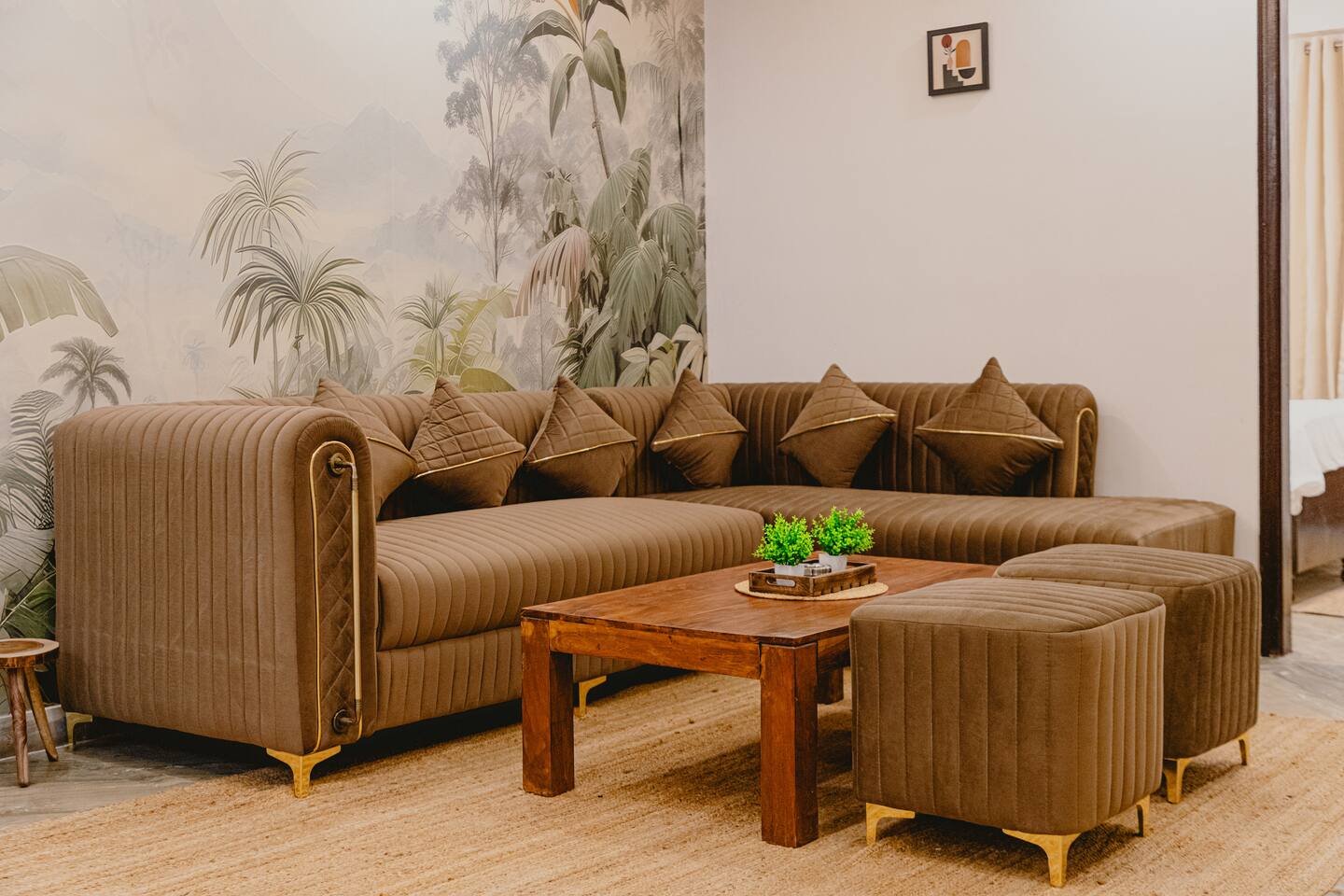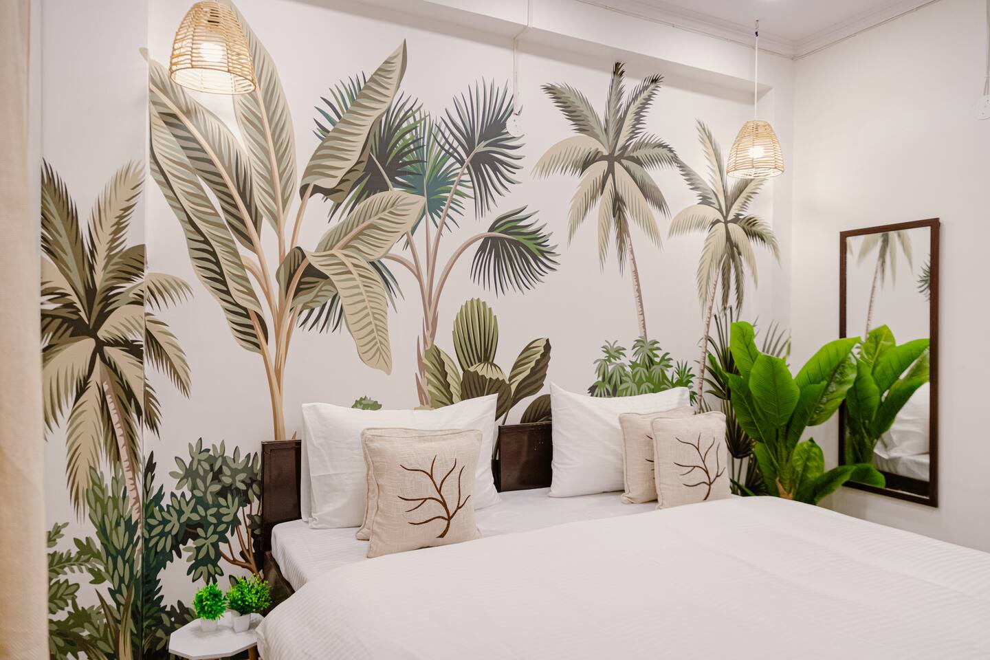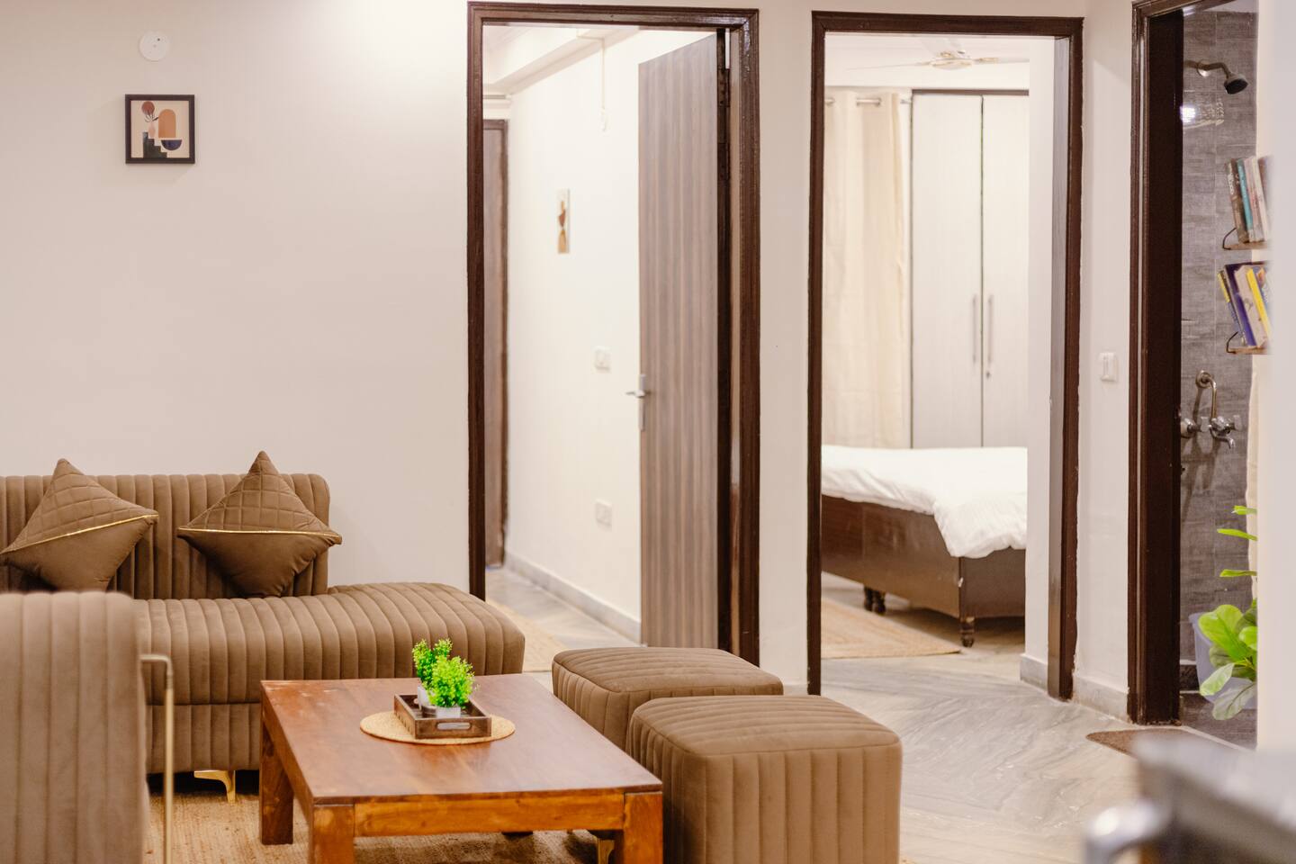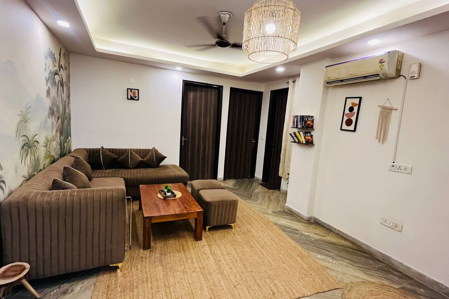 "Welcome to our home, where vibrant bohemian style meets the relaxed charm of tropical vibes. Designed with modern comforts and chic decor, every detail blends beauty with functionality. With lush greenery, pops of bold color, and intricate patterns throughout, our space invites you to unwind and soak in the peaceful ambiance. Whether you're lounging in the cozy living room, cooking up a storm in the fully equipped kitchen, or retreating to one of the spacious bedrooms, our tropical boho haven is the ideal place for your Chattarpur getaway. Plus, with an elevator for easy access to all levels, comfort is just a step away. Embrace the perfect mix of modern convenience and tropical relaxation. Book now and discover the allure of our Dhan Mill retreat. Key Features: Just 5 minutes from the Dhan Mill Complex with luxury boutiques and cafes. Spacious living room for relaxing or entertaining. Three stylish, air-conditioned bedrooms with bold décor. Fully equipped kitchen for culinary adventures. Elevator access for easy convenience. Ideal space for professionals needing a creative environment. Easy access to Delhi's vibrant nightlife and cultural gems. Perfect for both leisure and business stays."