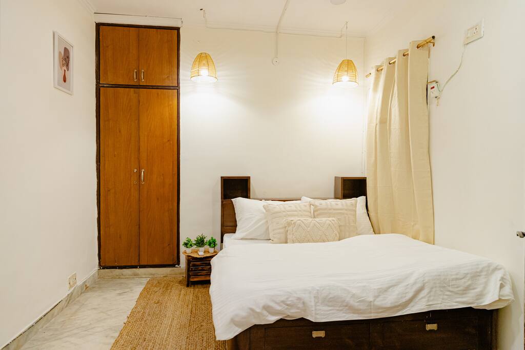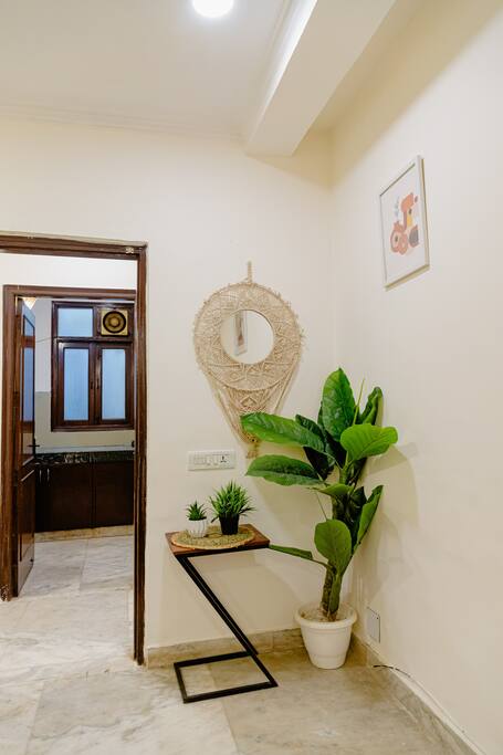 Welcome to The Belladonna Spaces, our 3 BHK Airbnb, ideally located next to the Hauz Khas Village fort in Delhi. This bohemian-themed apartment combines modern luxury with traditional appeal, offering three bedrooms, a fully equipped kitchen for your culinary needs, and a spacious living room perfect for relaxation and gatherings. Enjoy a relaxing escape with all the comforts of home, while being just steps away from the city's vibrant nightlife, cultural experiences, and historical attractions.
